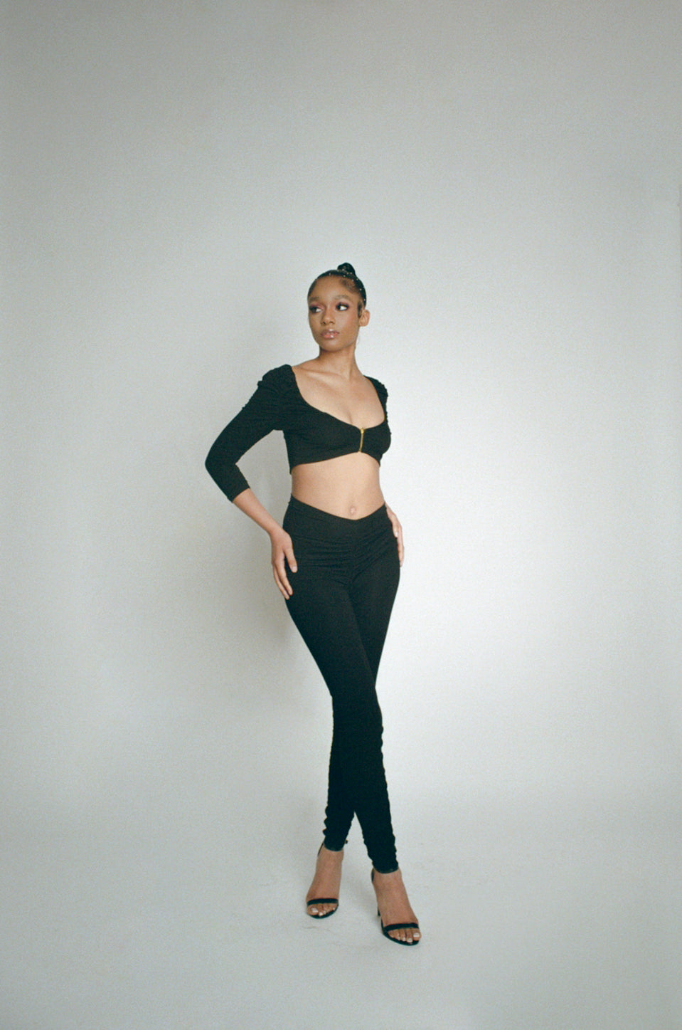 Ruched High Waisted Trousers – Black